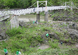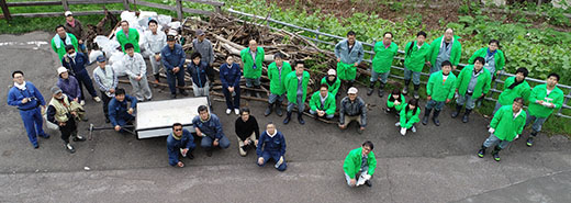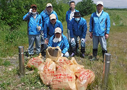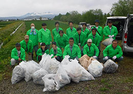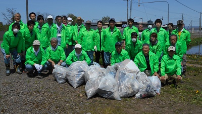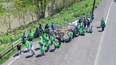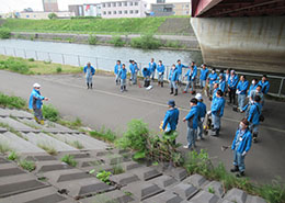 2班に分かれてゴミ拾い活動を行いました。 43名 (1)石狩川 神居古潭地区のゴミ拾い及び流木処理 (2)愛宕新川 河川敷2kmのゴミ拾い |