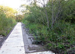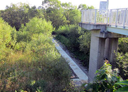 導水路に流入し取り除かれた土砂が積み上がり、草木も茂っております。
