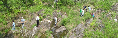 上段:愛宕新川、下段:石狩川(神居古潭地区)での作業風景です。