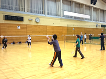初心者から経験者まで自由参加。時にはバドミントン以外の活動を行うことも。